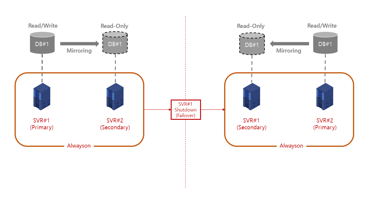 위의 설명처럼 Alwayson이란 장애를 대비해 복제 서버를 구성하고, 장애 발생 시 복제 서버의 데이터를 사용할 수 있도록 구성하여 서비스 다운타임을 최소화 할 수 있는 기능입니다. 그럼 Alwayson 구성을 해보겠습니다.