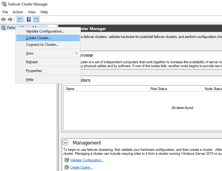 1. 장애조치 클러스터링(Failover Cluster Manger) 구성. Alwayon 구성 시, Cluster 구성은 필수입니다. 주 서버가 될 서버에서 구성을 진행합니다.