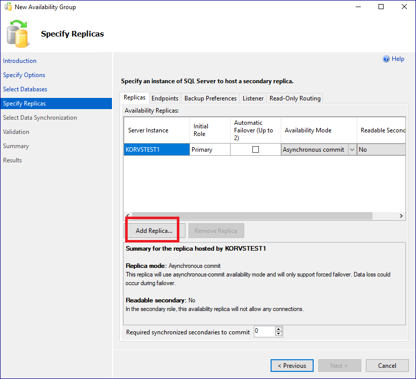 1. 주 서버(SVR#1)의 데이터베이스를 가용성 그룹에 추가