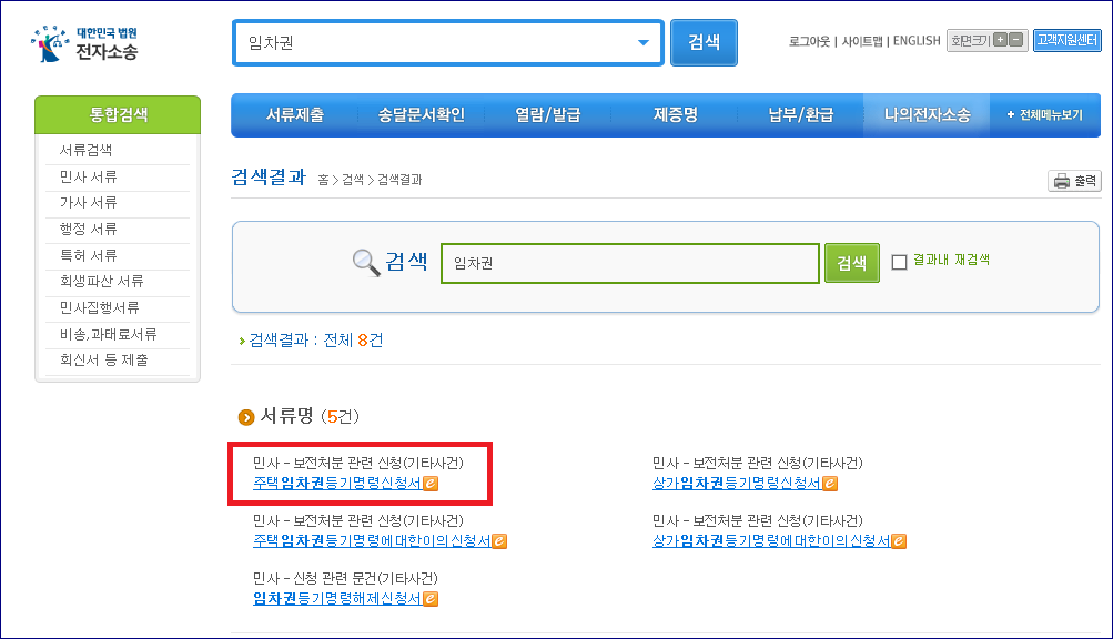 - ecfs.scourt.go.kr/ 대한민국 법원 전자소송 페이지에서 진행합니다.