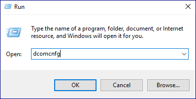 1. 구성요소 서비스 실행. 실행 창에 'dcomcnfg' 입력 후, 구성요소 서비스를 실행합니다.