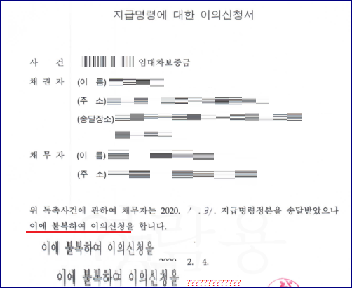 예상하고 있었지만 쉽지 않은 상대였습니다... 이의제기는 증거 없이 우선 신청할 수 있고, 말 그대로 이의가 있는 부분에 대해서는 본안소송에서 다뤄지게 됩니다. 그래서 대부분의 채무자들이 시간 끌기용으로도 많이 쓴다고 하더라구요. (민사로 사건 전환하는 데 시간이 또 걸림!!)