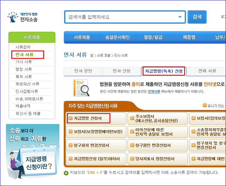 - ecfs.scourt.go.kr/ 대한민국 법원 전자소송 페이지에서 진행합니다.