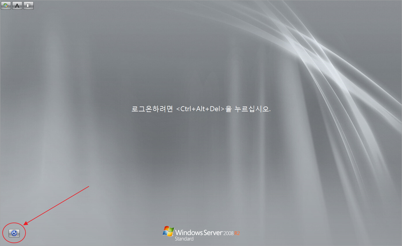 6. cmd 실행. 부팅 후 로그인 화면에서 '접근성' 기능을 클릭하여 cmd 창을 실행합니다. 지금까지의 변경 작업이 바로 아래 버튼을 통해 cmd 창을 실행하기 위함입니다.