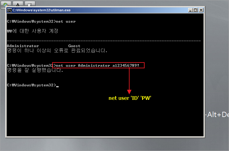 로그인 화면에서 cmd 창을 띄워서 명령어로 패스워드 변경할 수 있습니다. 하지만, 기본 상태에서는 로그인 창에서 cmd 창을 띄울 수가 없기 때문에, 로그인창에서 cmd 창을 띄울 수 있도록 구성 변경을 진행하겠습니다.