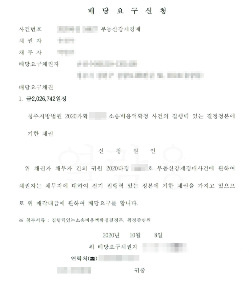 그래서 결국은 진행 중인 경매가 있기 때문에 여기에 배당요구서를 제출했습니다. (다행히 배당요구종기일 직전, 법원 방문 접수)