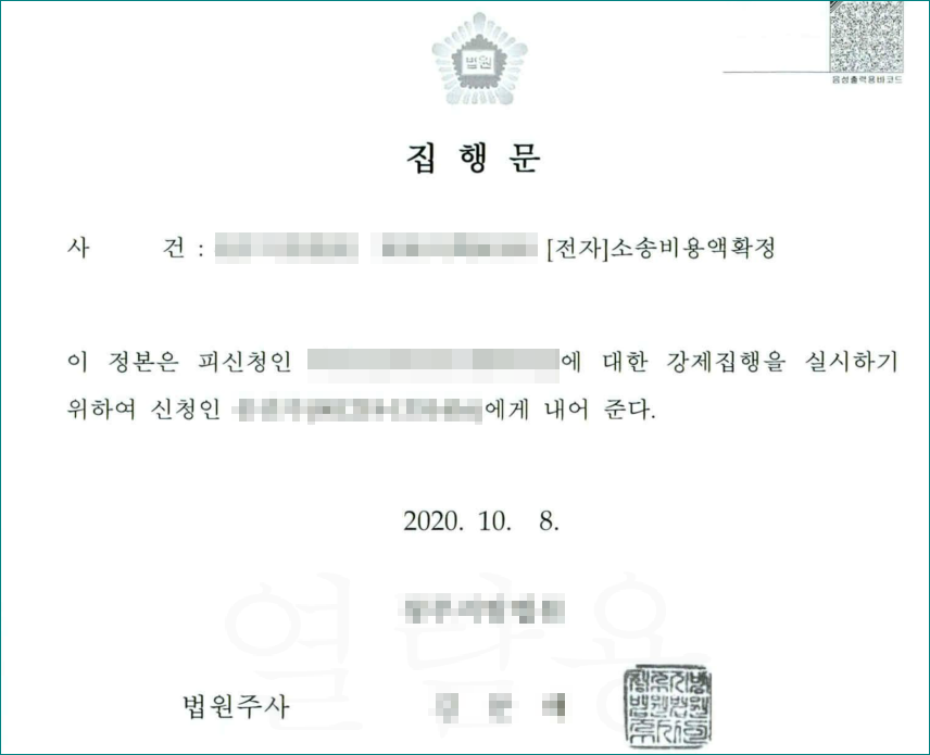 그래도 조금 더 압박을 넣어보기 위해 채권압류를 진행했었는데요, 다음 포스팅에 이어서 작성해보겠습니다~~