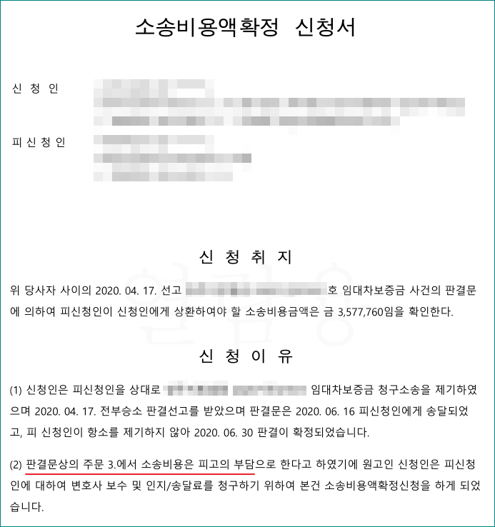 내 돈 찾아먹겠다고 변호사도 사고 소송 비용도 썼는데 이 돈도 다 받아내야겠죠? 바로 소송비용액확정 신청을 통해 이런 소송 준비, 진행에 사용된 비용들을 받아낼 수 있도록 판결을 받을 수 있습니다!!