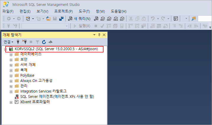 **서버 쪽에서 SSMS 실행시에는 문제 없음