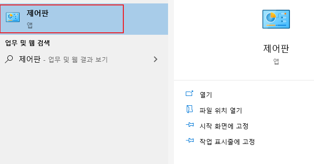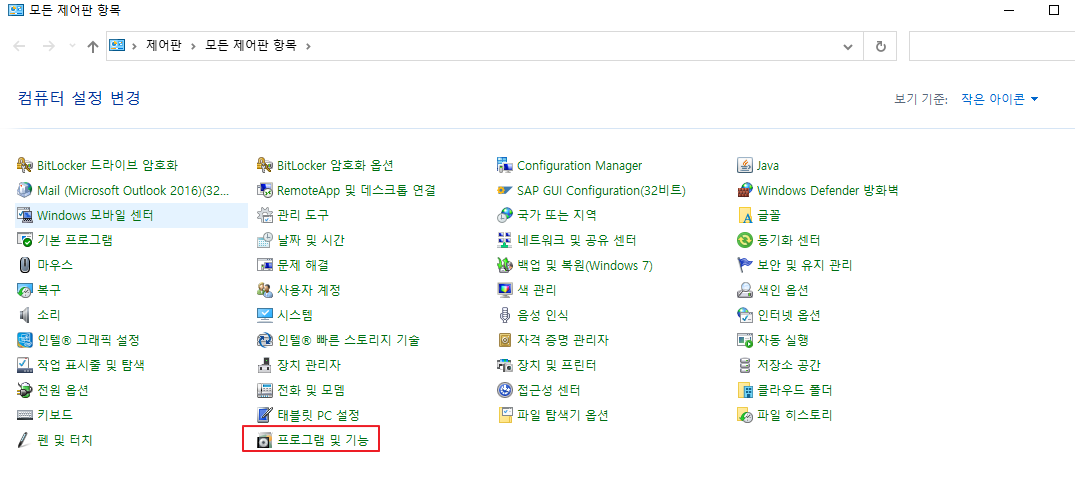 1. [제어판]. [제어판] > [프로그램 및 기능] 메뉴로 접속합니다.
