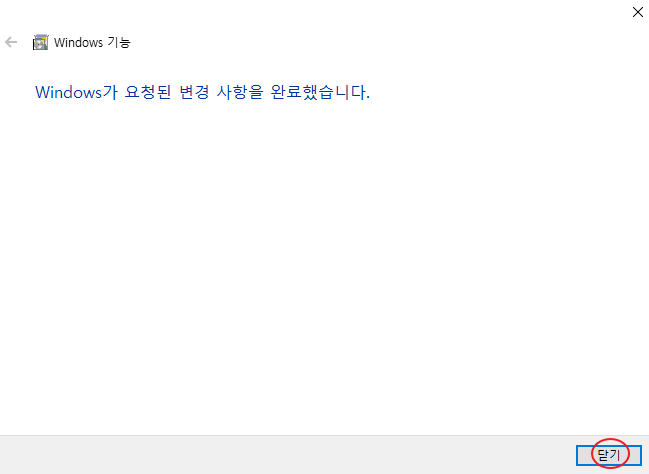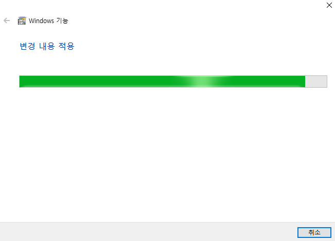 4. 진행 및 완료. 약 1~2분 정도 설치가 진행되며, 재부팅 과정 없이 설치가 완료됩니다.
