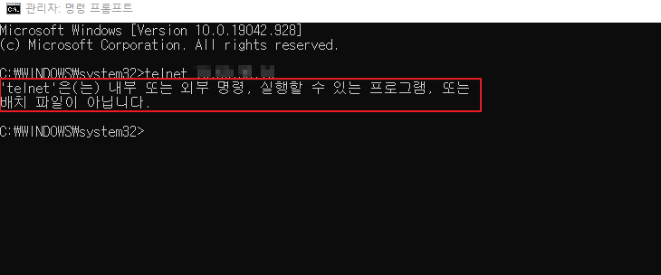 'telnet'은(는) 내부 또는 외부 명령, 실행할 수 있는 프로그램, 또는 배치 파일이 아닙니다.