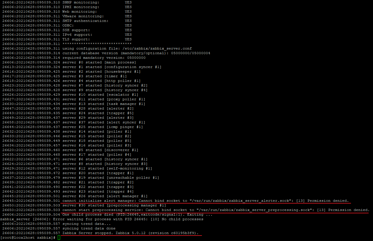 Zabbix 서버 설치 및 설정 직후, 서버가 멈추는 증상