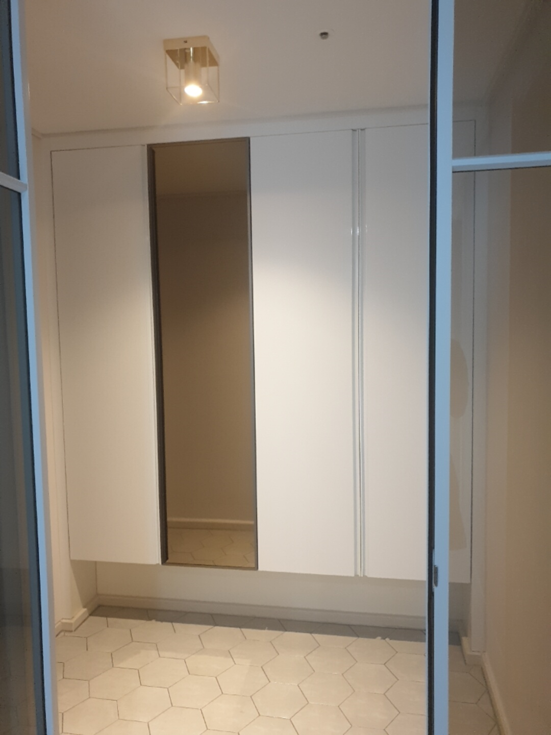신발장 | 내부는 활용하고 문만 교체 (화이트 매트 색상, 1개 브론즈 거울로 교체)