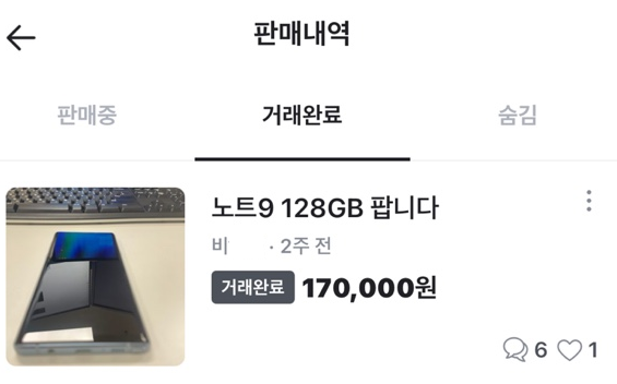 노트 9는 당근마켓에서 무수한 요청과 함께 판매 완료