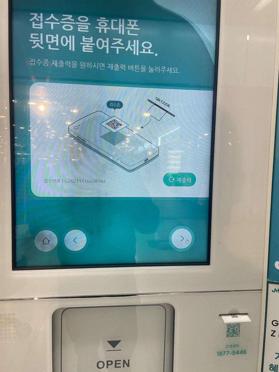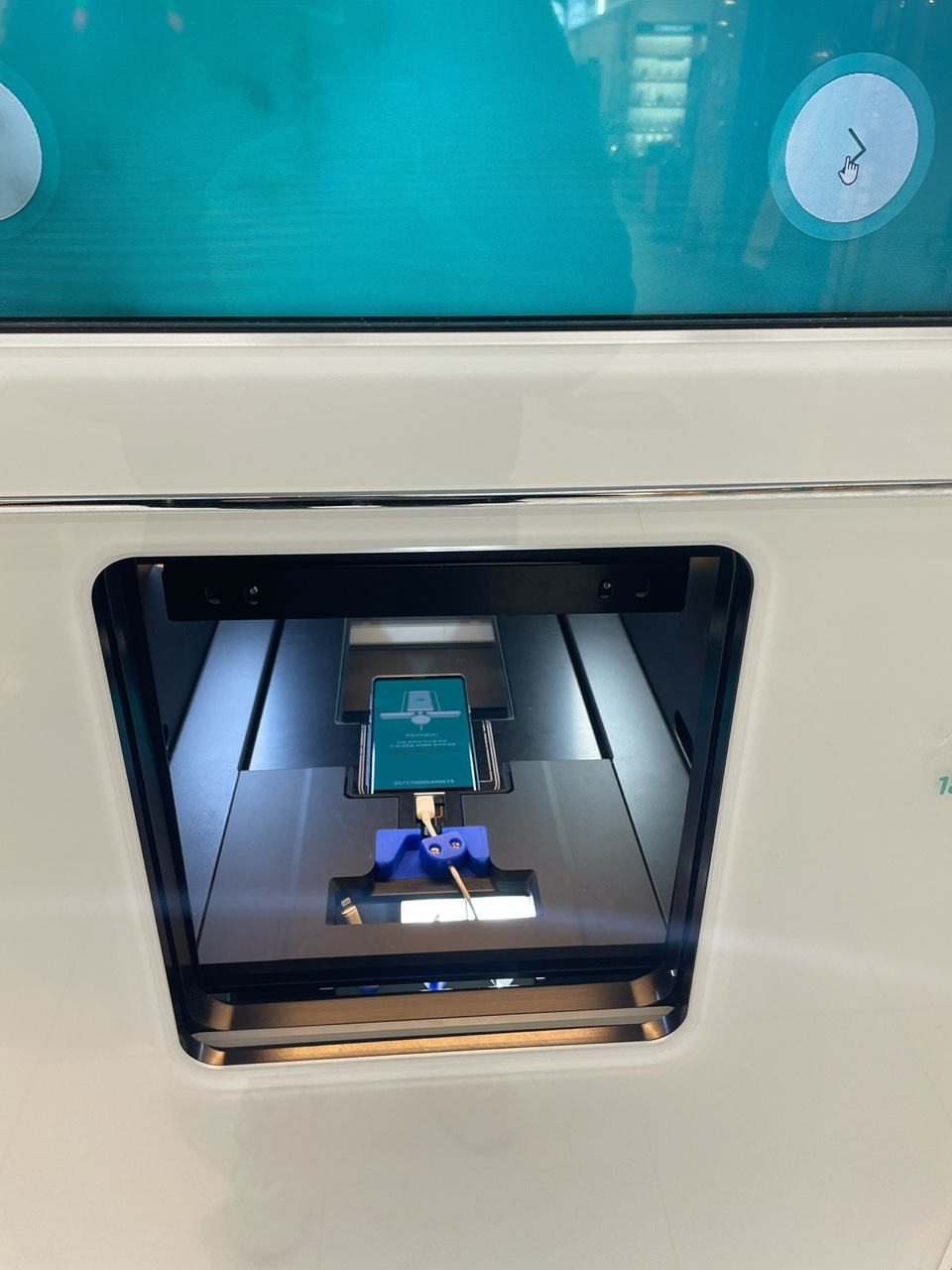 5. 수납함에 넣고 검사를 진행합니다. (위 핸드폰 인증 완료 후, 수납함 열림)