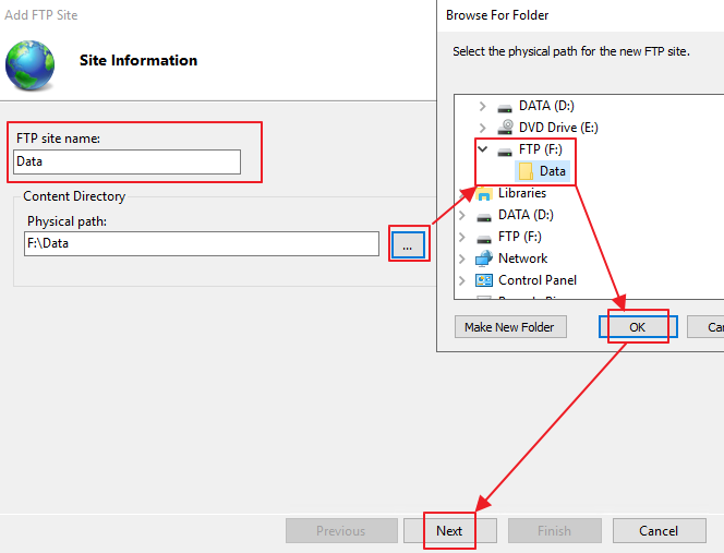 3. 이름 및 경로 설정. [FTP 이름]은 편한이름으로 설정하고, 데이터가 실질적으로 저장 될 [경로]를 선택합니다.