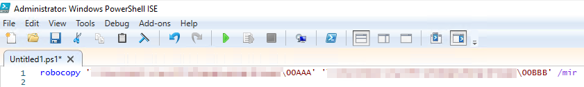 robocopy '원본폴더경로' '대상폴더경로' /mir
