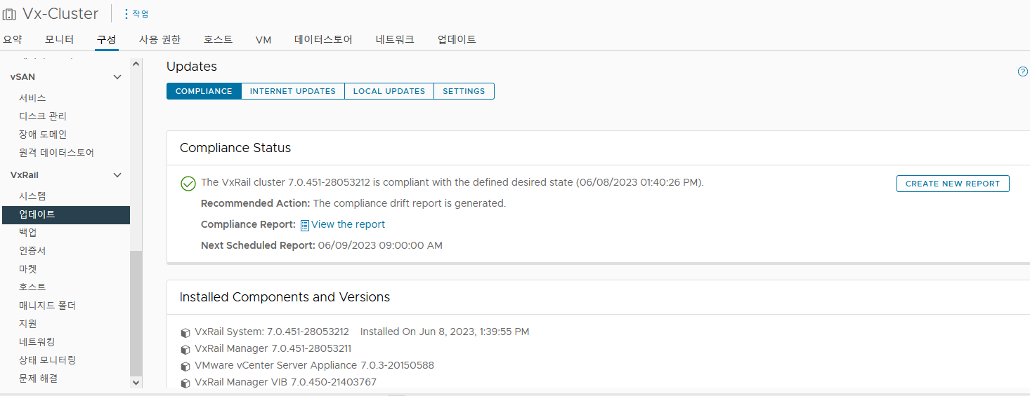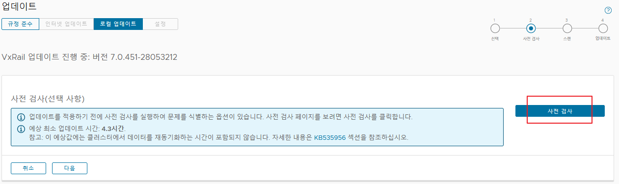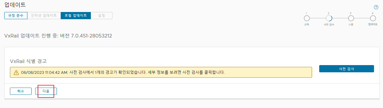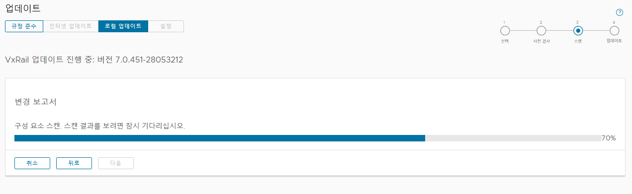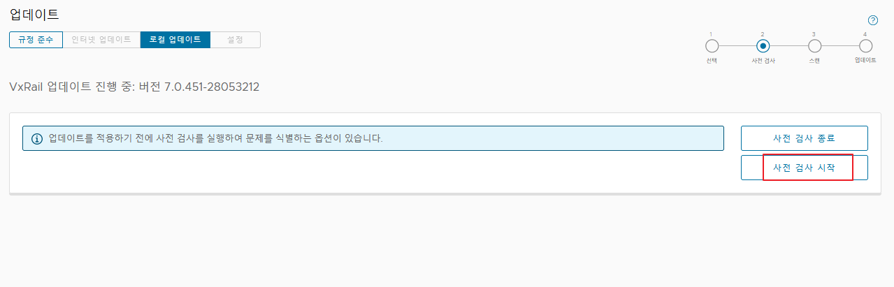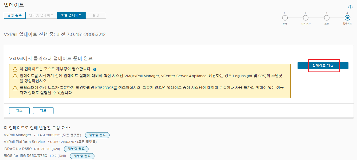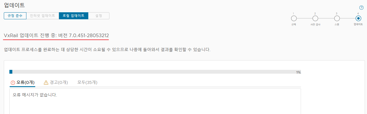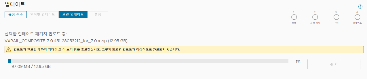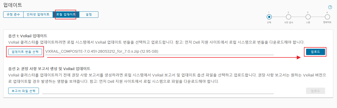 Vxrail Cluster -> 구성 -> [Vxrail] 업데이트 -> 로컬 업데이트