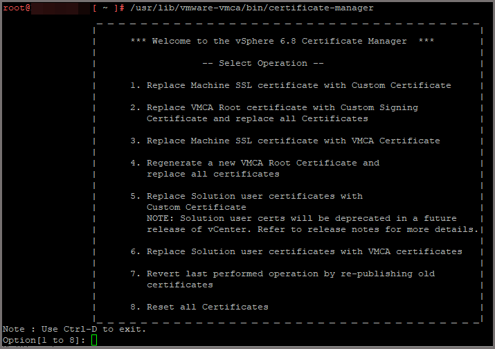 please see /var/log/vmware/vmcad/certificate-manager.log for more information.