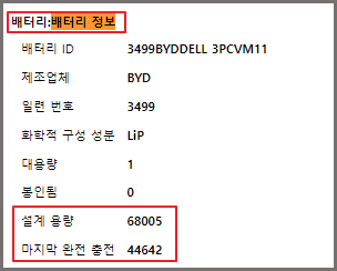 배터리 효율 = '마지막 완전 충전' / '설계 용량' * 100