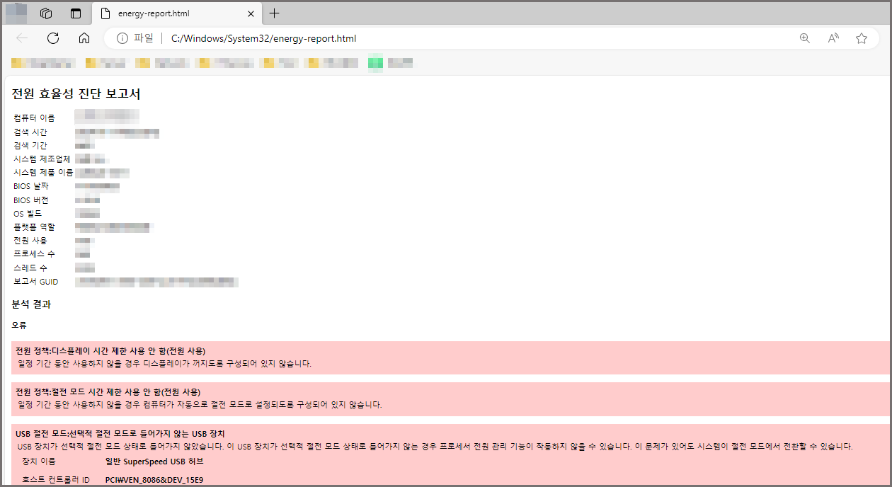 사진과 같이 보고서를 열 수 있고, '찾기(Ctrl+F)' 기능을 통해 '배터리 정보'를 입력하고 배터리 용량을 확인합니다.